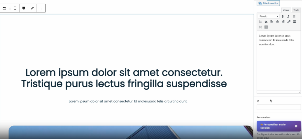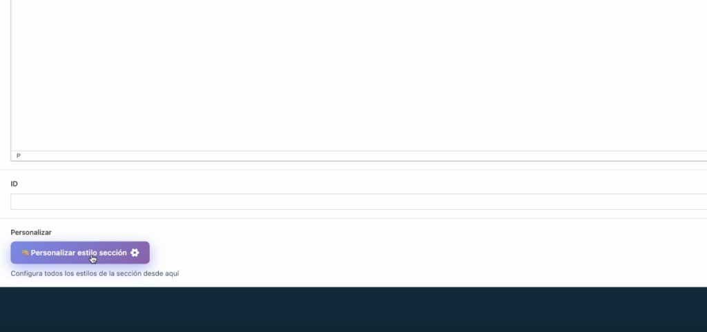 Al entrar en su edición, bastará con seleccionar el bloque correspondiente y desplazarnos hasta la parte inferior de sus opciones, donde encontraremos el nuevo botón “Personalizar estilo de sección”, desde el que podremos realizar los ajustes necesarios.