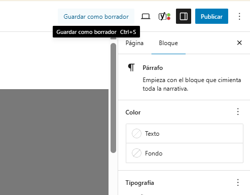 Una vez tengamos la página preparada, podemos darle a publicar, o si queremos continuar editando podemos guardarla como borrador.