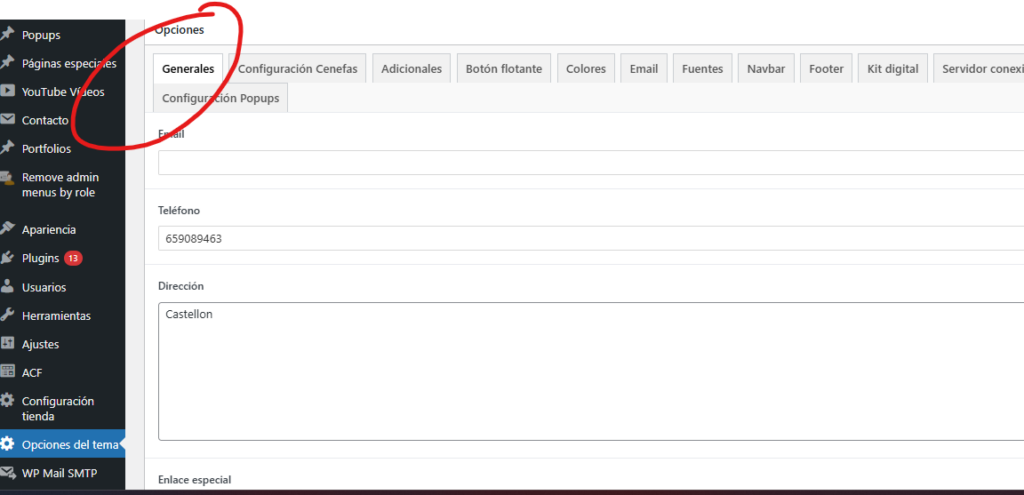 En el apartado lateral izquierdo del editor, pinchamos en Opciones del Tema