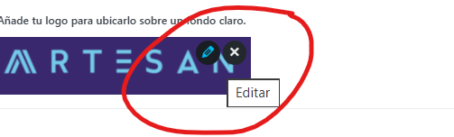 Si al incluir el logo nos queda demasiado pequeño, podemos editarlo pinchando en la opción del lápiz que aparece simplemente poniendo el cursor del ratón sobre el logo añadido