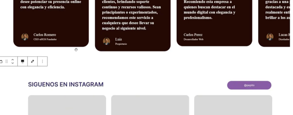 En la home, buscamos el bloque donde tengamos la cenefa de las RRSS de instagram y pinchamos sobre el lápiz para editar