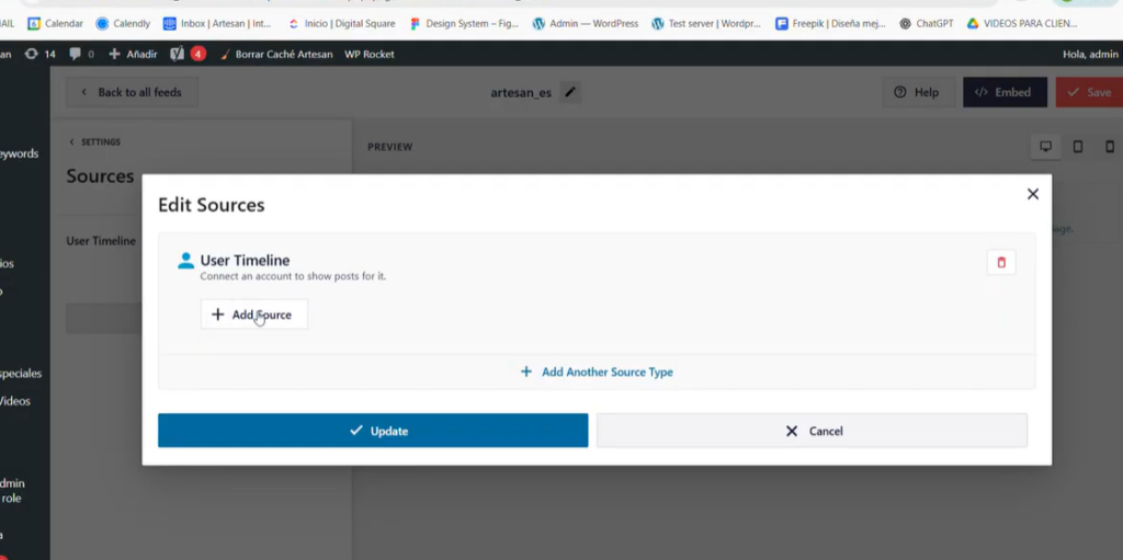 Pinchas sobre el lápiz del Usuario y se abrirá el apartado Settings- Ahí deberás pinchar en SOURCES