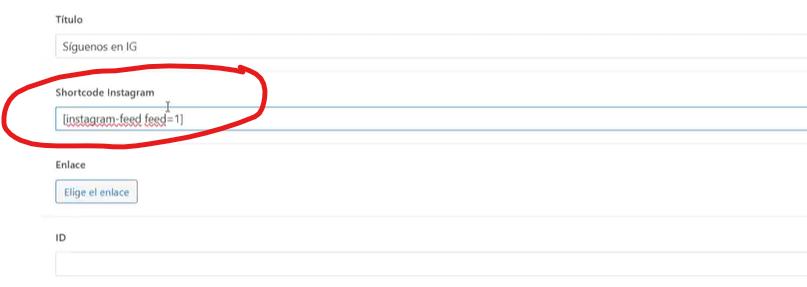 Aquí podemos editar el Título: Síguenos en RRSS por ejemplo y pegamos el Shortcode que habíamos cogido en el apartado 9.