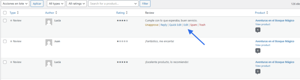 3.6 Podemos editar las Reviews del producto o eliminarlas