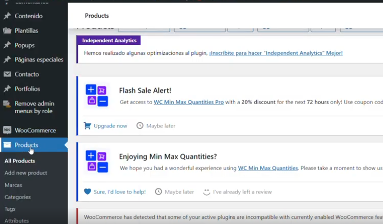 En el Admin en la barra de la izquierda, buscamos el apartado de productos