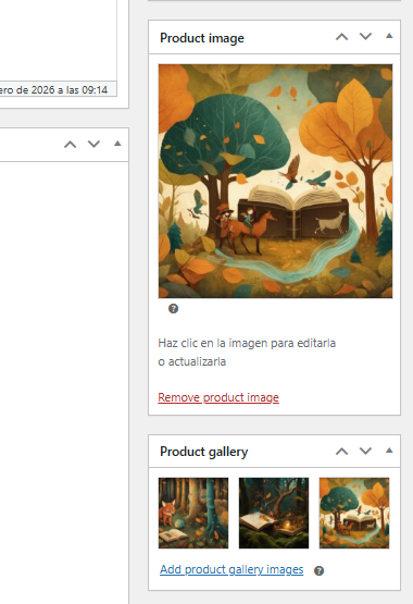 Únicamente subimos hasta la parte superior derecha, donde aparece la imagen principal del producto y pinchando sobre ésta, podemos modificarla y subir la que queramos para el producto .