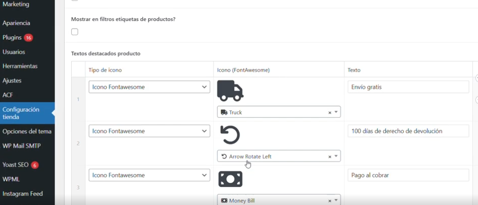 4.Modificar los iconos del producto de la web