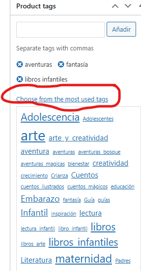 Aquí podemos seleccionar la opción de choose from de most used tags para que la web nos proporcione los mas utilizados. Deberemos separarlos por comas y poner un máximo de tres.